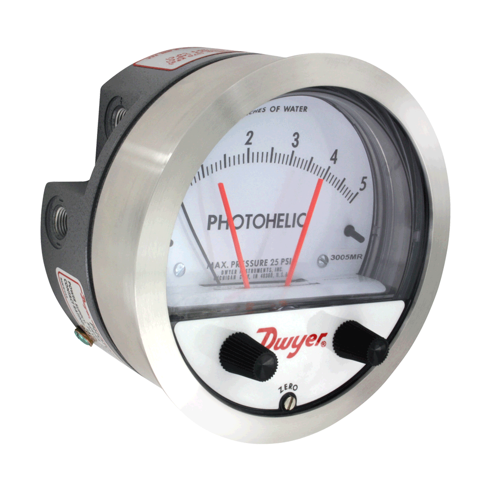 3000MR 3000MRS Photohelic? 差壓表的精度是±2%, 開關的重復精度是±1%,回差小于1%,比指針的寬度還窄。它可用于空氣或其它不可燃,無腐蝕的氣體,耐壓到25psig(1.725bar)。有耐壓35 psig(2.42bar)或耐壓80 psig (5.51bar)的特別結構選項。