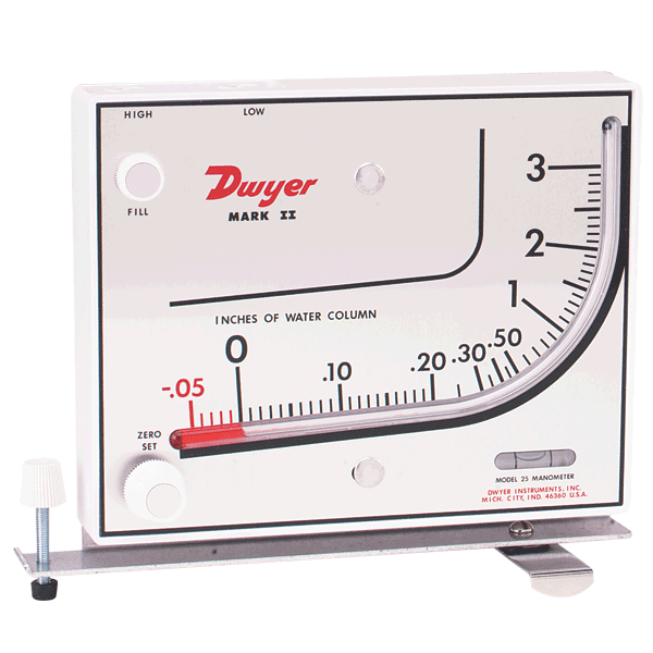 安裝 - Mark II壓力計(jì)可以用提供的兩個(gè)螺釘裝在任何垂直的表面上。內(nèi)置的水準(zhǔn)儀在擰緊安裝螺釘之前可以簡(jiǎn)化水準(zhǔn)測(cè)量。只要將儲(chǔ)液處加滿,將液體刻度調(diào)整至零,再接上tubing管,壓力計(jì)就可以開始使用了。