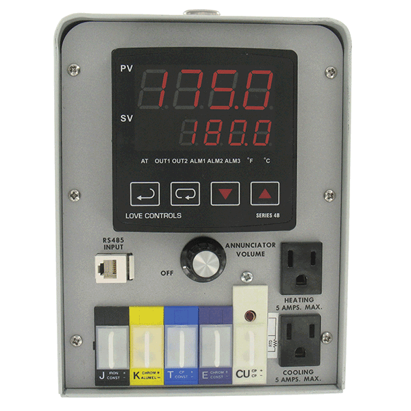 該單位可以編程為開/關(guān),PID,自動調(diào)整,或手動調(diào)整控制方法。PID控制支持64斜坡/浸泡行動。4B系列還包括兩個額外的報(bào)警輸出。第二個繼電器輸出可以重新配置為第三個報(bào)警輸出。報(bào)警類型可從13種不同的預(yù)編程報(bào)警功能中選擇。該控制器具有雙LED顯示本地指示過程和設(shè)定值。