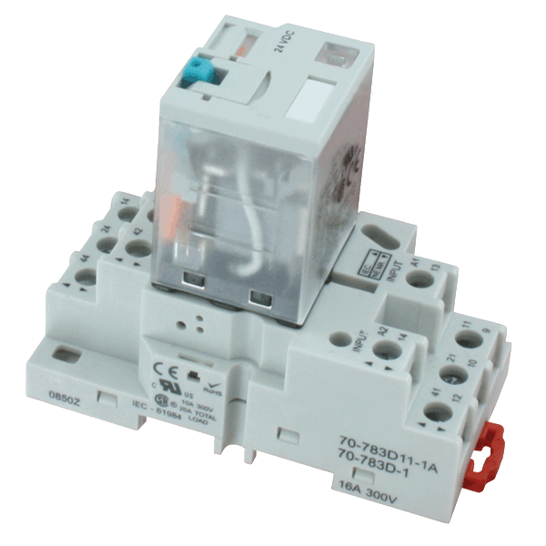 783系列機電冰立方繼電器是一種功能齊全的3PDT繼電器,可以用一個觸發器控制多達3個設備。它具有一個標志狀態指示燈和一個LED狀態燈,讓用戶知道何時繼電器被激活。為了區分交流和直流驅動的型號,按鈕按鈕測試是彩色編碼。為了測試操作,一個可移動的鎖定桿將測試按鈕固定在適當位置。透明的塑料外殼提供了接觸點的視圖,并且有一個可移動的標識標簽用于標記電路。783系列可以處理高達15安培的負載。