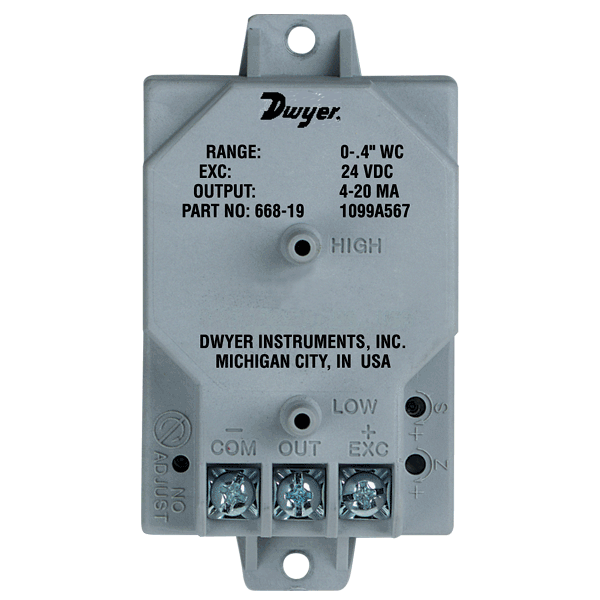 668系列微差壓變送器能夠測量很微小的差壓,精度達到1%,非常適合用于室內壓力,風壓等的監測。它能承受10 psig的靜壓也不會損壞儀表。可變電容式的傳感器具有靈敏度高,穩定耐用等特點。尺寸小,重量輕使得安裝容易。此變送器帶有反向保護功能。