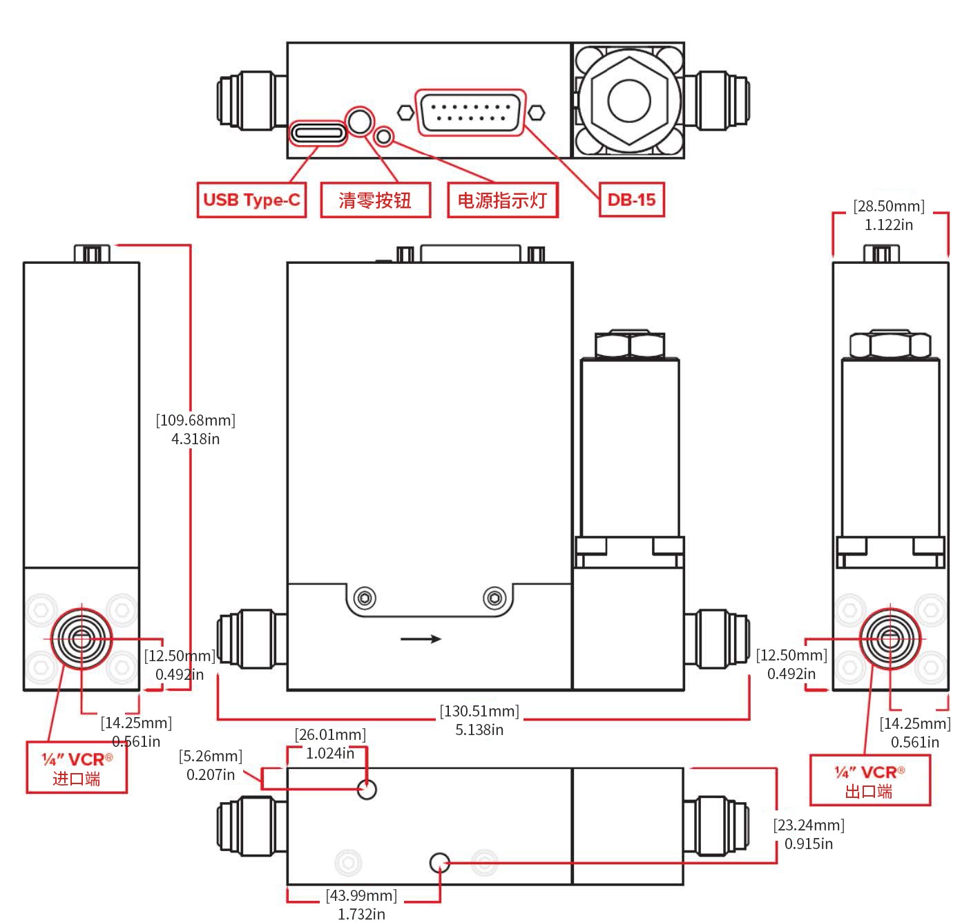 3 kg/h–10 kg/h | 1/4″ VCR?-外螺紋 | 40 μm | ≥15 PSID | 1500 | 2× M5-0.8 × 10 mm |