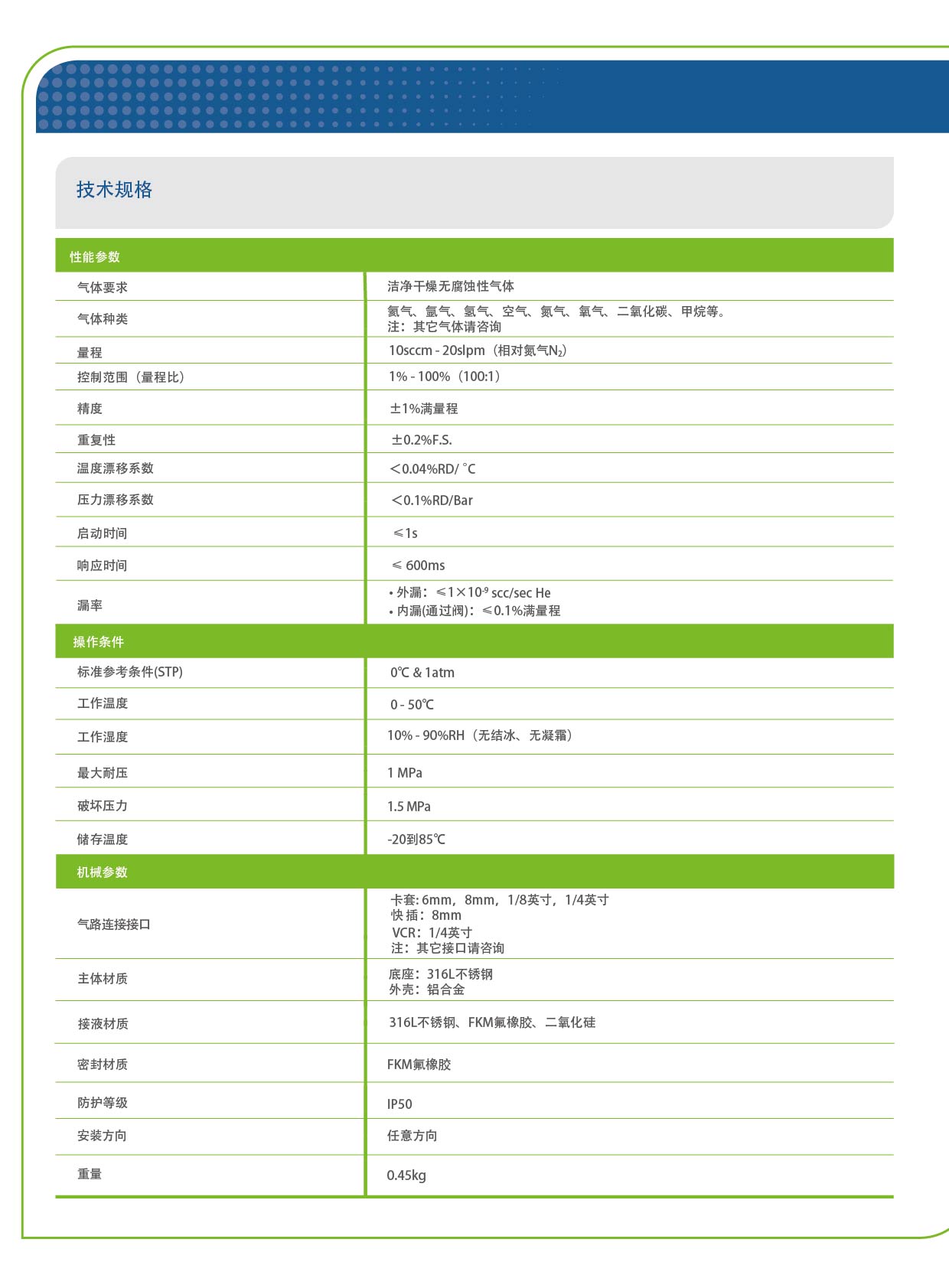 量程 10 SCCM - 20 SLPM,±1 % 滿量程精度,優(yōu)于 600 ms 響應時間